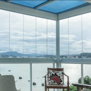 Nesse imóvel o cliente continuará desfrutando da vista pois o envidraçamento Kit Sacada Certa permite a visão total to exterior, como ñão existe perfis entre painéis, a visão é panorâmica.